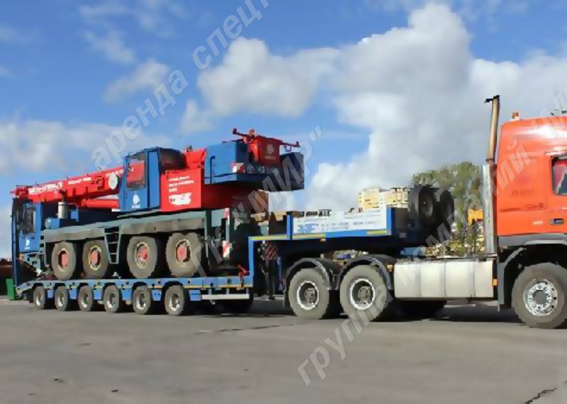 Трал - полуприцеп-тяжеловоз с раздвижной платформой. Трал Вольво в сцепке с полноприводными тягачами Volvo FM 480 6х6 Tornado. Полуприцеп-тяжеловоз имеет пневматическую подвеску, регулируемую по высоте, 6 осей (три из них поворотные), сдвижные механические трапы размером 2,34 х 0,7 м.